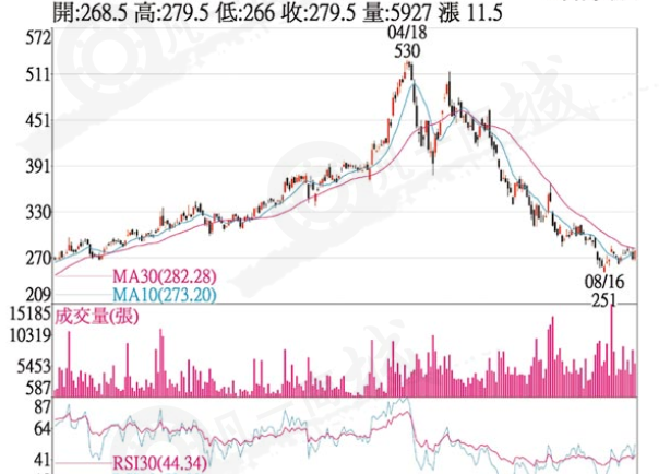 上銀集團上半年EPS攀升至9.64元,創同期新高,法人預估全年合併營收300~310億元,內資認為上銀開發出機器人心臟─諧波減速機,添營運動能,看好今年EPS上看20.23元,明年EPS挑戰21.94元,昨日股價上漲11.5元,279.5元收盤,一舉突破5日均線及月線反壓套牢區。