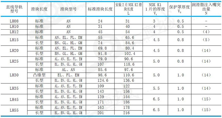 NSK直線導軌型號: LA系列 LY系列 LA25AL,LA25BL,LA30AL,LA30BL,LA35AL,LA35BL,LA45AL,LA45BL,LA55AL,LA55BL,LA25AN,LA25BN,LA30AN,LA30BN,LA35AN,LA35BN,LA45AN,LA45BN,LA55AN,LA55BN,LA65AN,LA65BN,LA25EL,LA25GL,LA30EL,LA30GL,LA35EL,LA35GL,LA45EL,LA45GL,LA55EL,LA55GL,LA65EL,LA65GLMLA25FL,LA25HL,LA30FL,LA30HL,LA35FL,LA30HL,LA35FL,LA35HL,LA45FL,LA45HL,LA55FL,LA55HL,LA65FL,LA65HL,LY15AL,LY20AL,LY20BL。LY25AL,LY25BL,LY30AL,LY30BL,LY35AL,LY35BL,LY45AL,LY45BL,LY55AL,LY55BL,LY15AN,LY25AN,LY25BN,LY30AN,LY30BN,LY35AN,LY35BN,LY45AN,LY45BN,LY55AN,LY55BN,LY65AN,LY65BN,LY15EL,LY20EL,LY20GL,LY25EL,LY25GL,LY30EL,LY30GL,LY30TL,LY35EL,LY35GL,LY45EL,LY45GL,LY55EL,LY55GL,LY65EL,LY65GL,LY15FL,LY20FL,LY20HL,LY25FL,LY20HL,LY25FL,LY25HL,LY30FL,LY30HL,LY35FL,LY35HL,LY45FL,LY45HL,LY55FL,LY55HL,LY65FL,LY65HL,